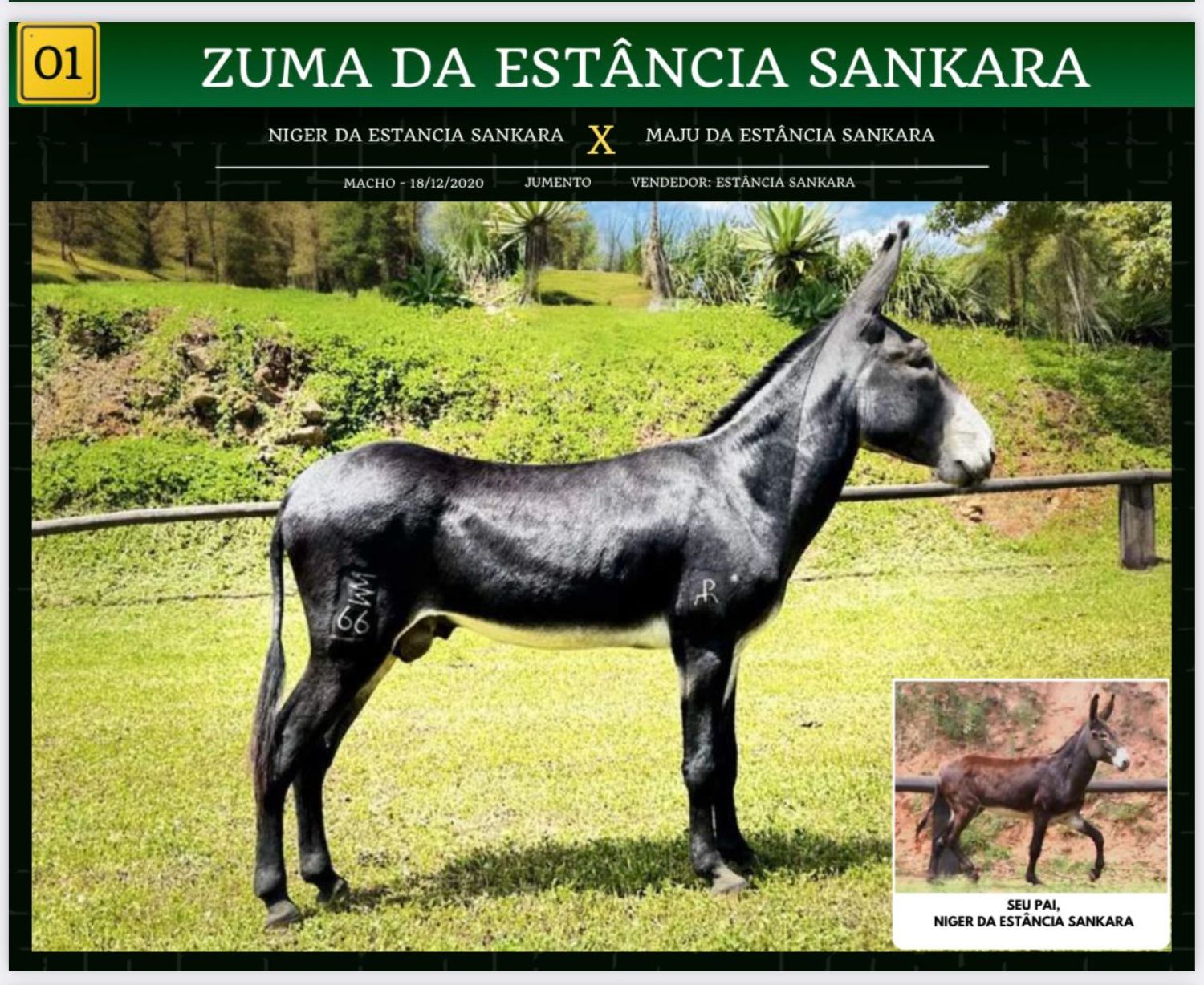 JUMENTO DA RAÇA PEGA, REGISTRADO, PELAGEM PRETA, ANDAMENTO MARCHA PICADA , COBRE ÉGUAS MUITO BEM, EXCELENTE REPRODUTOR.